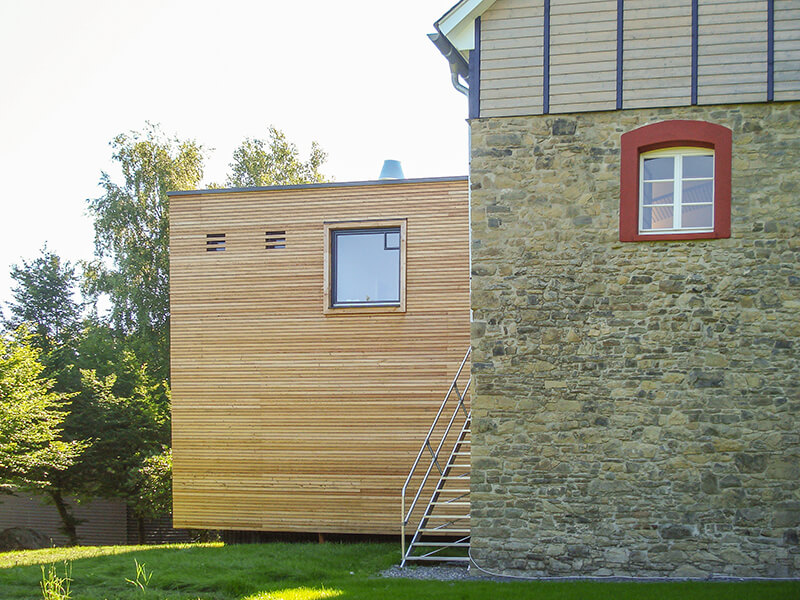 Selbst alte Fertighäuser lassen sich durch einen Anbau oder eine Dachgeschoss-Aufstockung im ökologischen Holzrahmenbau aufwerten.